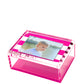 Featuring a pink bottom with striped lid with clear acrylic sides, it’s the perfect way to showcase a photo, school logo, or invitation. Plus, it makes an unforgettable baby or graduation gift – just print the school logo!