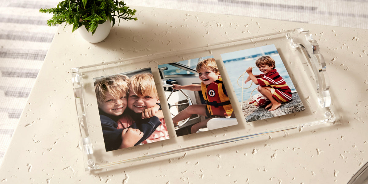 PHOTO TRAY - 16" X 8" WITH WHITE MAT FOR THREE 5" X 7" PHOTOS